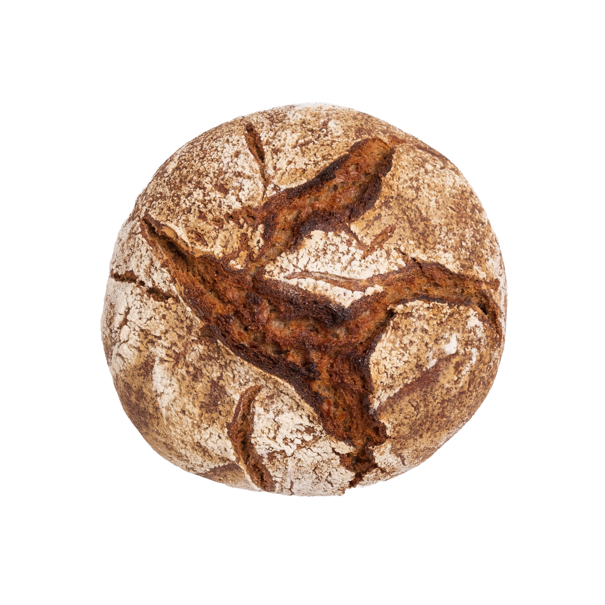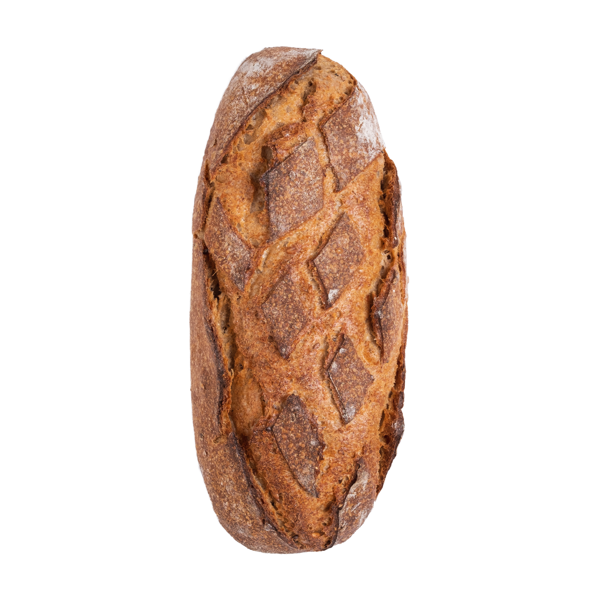 Pain rustique composé à parts égales de farine de blé et de farine de seigle. Pain nourrissant à la mie dense et foncée.